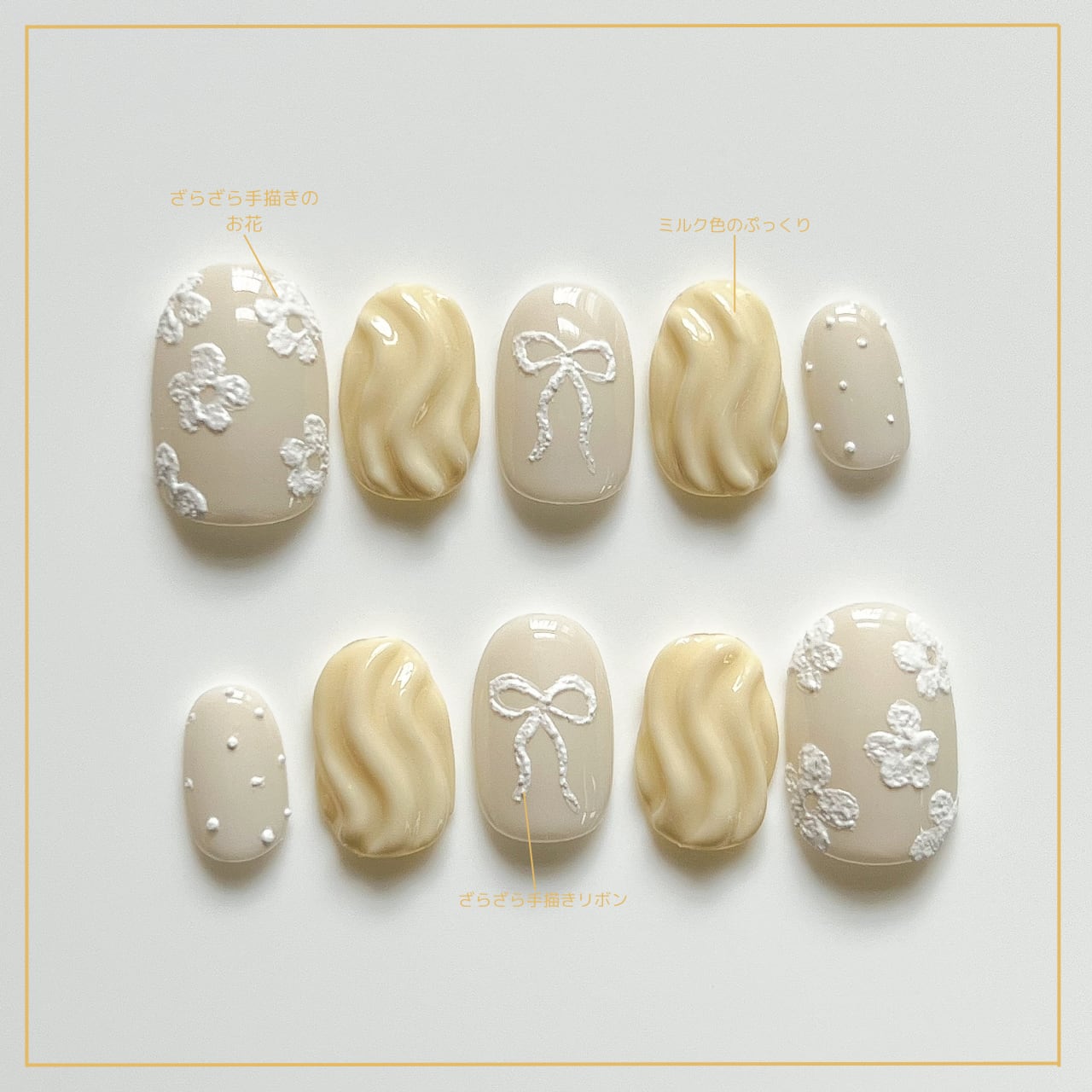 ミルキーなうねうねデザインが、まるでホイップのようにとろけて、手元にふわっと甘さを添えてくれます。