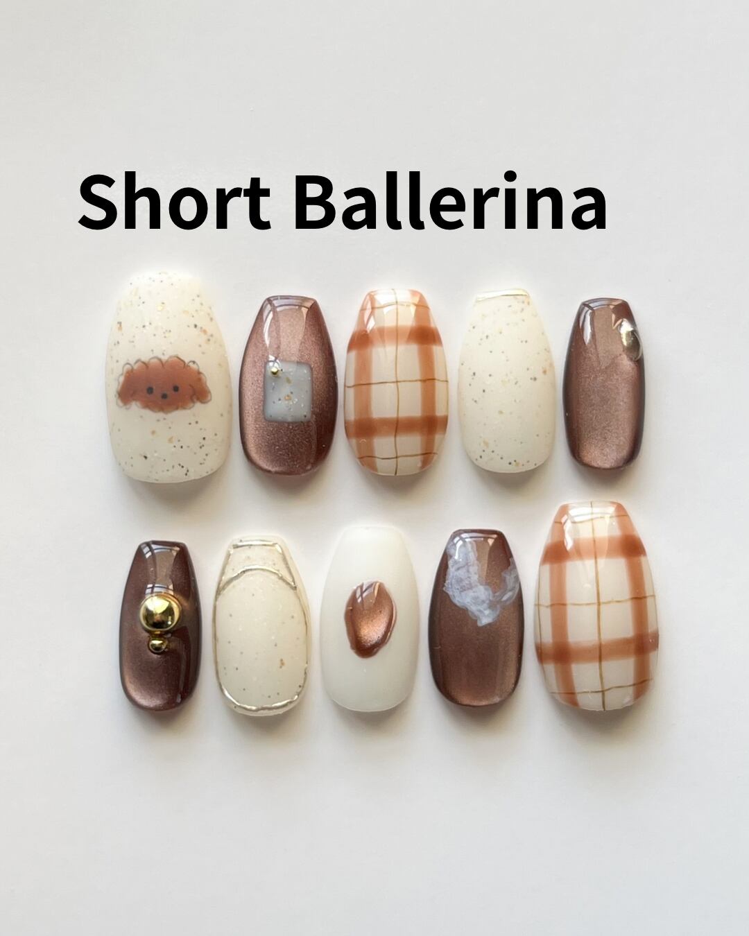 落ち着いたブラウンとメタリックのアクセントで、子どもっぽくならずに、大人かわいくまとまるデザインです。